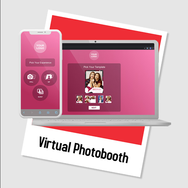 Virtual Photobooth All the fun of a photobooth now virtual. Now messy downloads. Simple link and click process with a range of features to drive traffic to your venu; engage your audience and create memorable pics, gifs, postcards and more